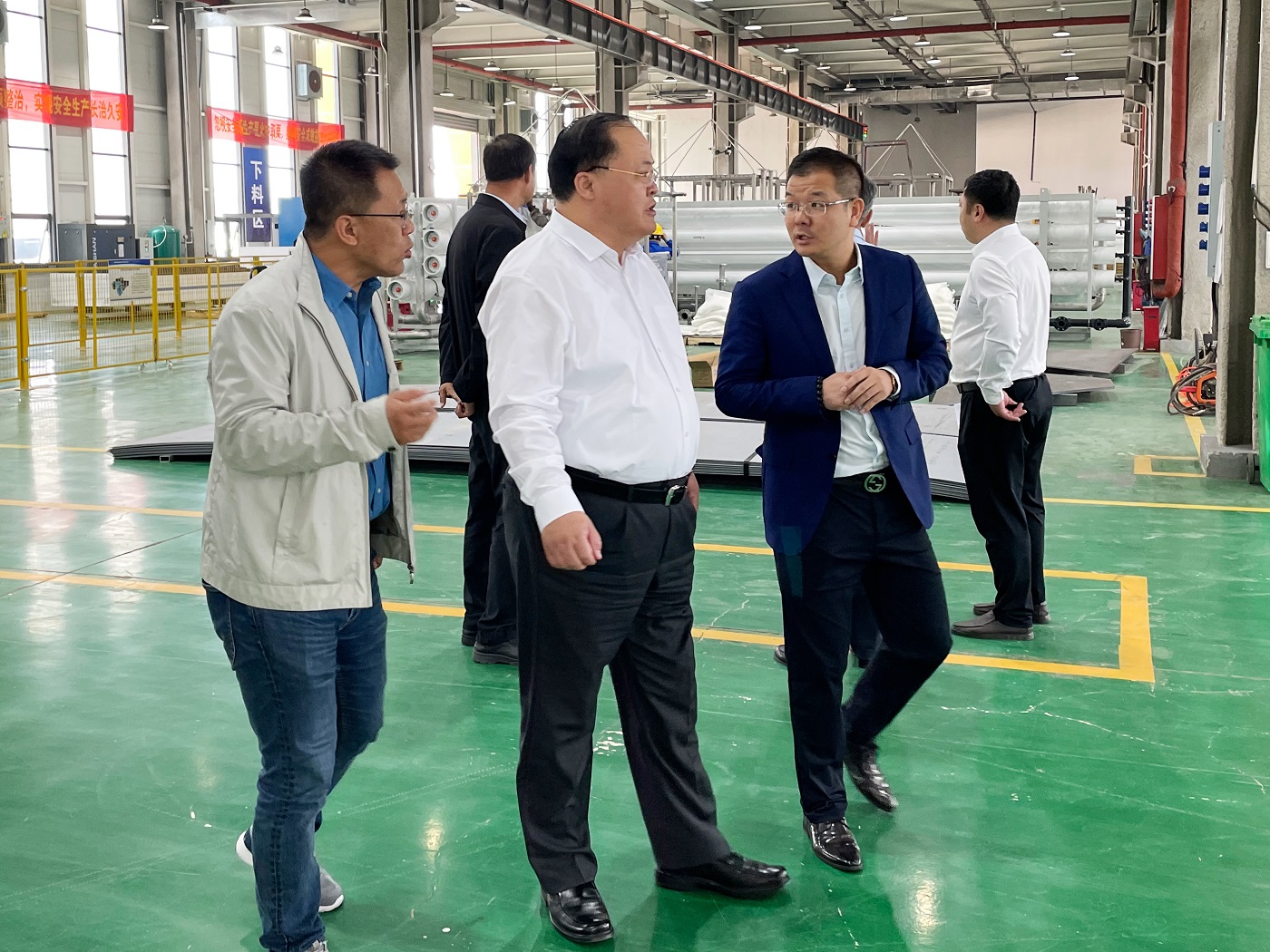 尹市長(cháng)一行首先來(lái)到天津工業(yè)大學(xué)滄州研究院,認真走訪(fǎng)查看了研究院相關(guān)學(xué)術(shù)研究及科研情況,隨后來(lái)到海派特智能化設備(河北)有限公司和海派特膜科技(河北)有限公司,實(shí)地考察了河北生產(chǎn)基地的產(chǎn)品應用情況、生產(chǎn)效率及工程項目建設情況,并認真聽(tīng)取了海派特總部董事長(cháng)趙艷華關(guān)于企業(yè)發(fā)展情況的匯報,勉勵企業(yè)進(jìn)一步拉高標桿、爭先進(jìn)位,狠抓項目質(zhì)量和進(jìn)程,瞄準世界先進(jìn)水平,加快推進(jìn)項目落地,努力打造具有國內領(lǐng)先水平的生產(chǎn)基地。他強調,要加快科研成果轉化,提升滄州市再生水回用效率,為區域新能源、醫藥、海水淡化等產(chǎn)業(yè)做貢獻。